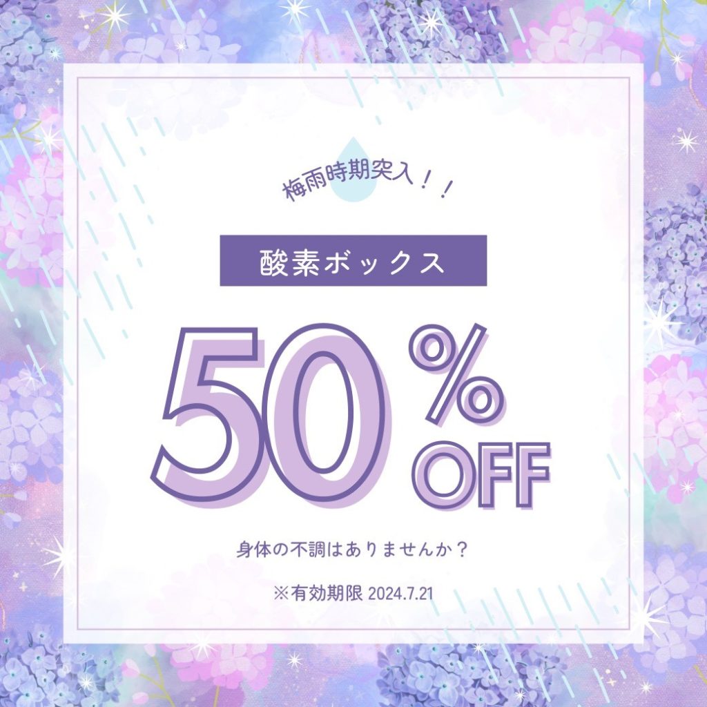 梅雨突入!!酸素ボックス半額キャンペーン始動!!