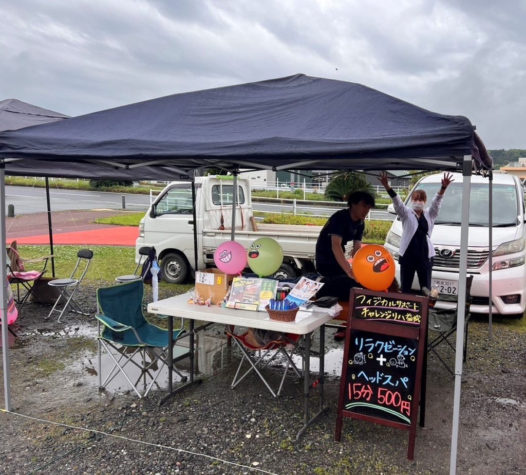 チャレンジリハ益城のブースでは国家資格保有者による専門的な整体、フットポンプ、ヘッドスパ等々の施術を1回15分低価格にて提供いたします。その他父の日ギフトなども販売いたします。日頃の感謝の気持ち、リラクゼーションで伝えてみませんか? 6/16(... -